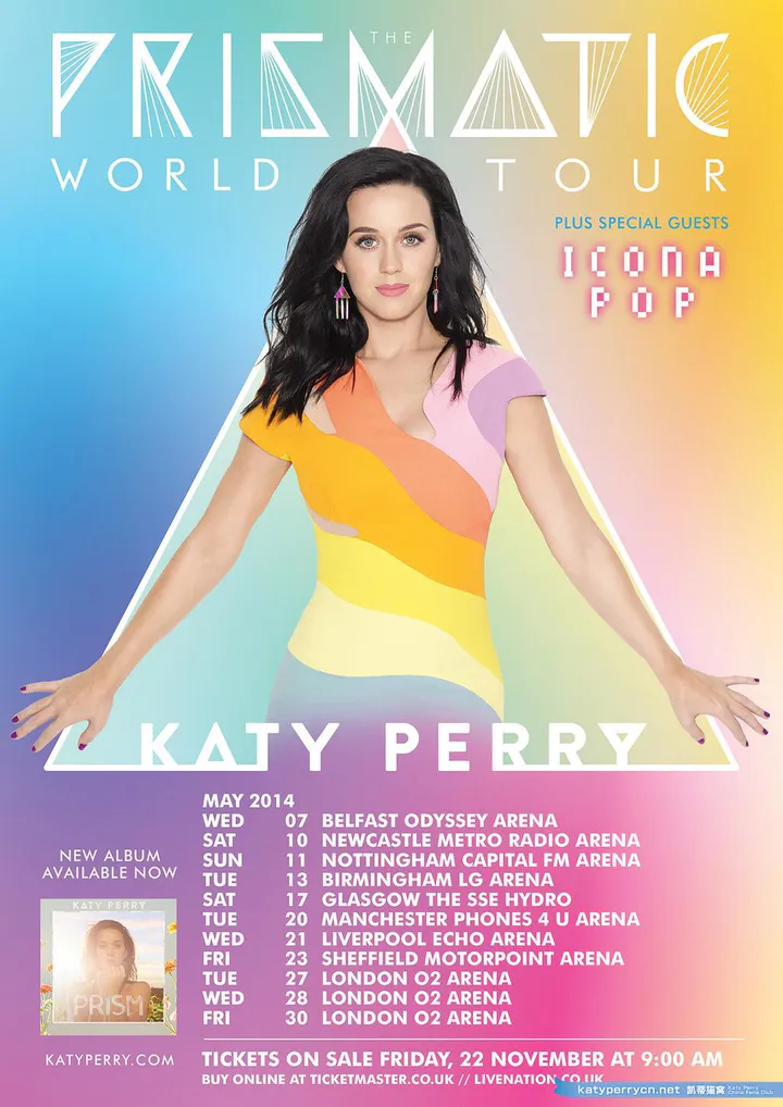 Katy Perry公布了2014 年 巡回演唱会『THE PRISMATIC WORLD TOUR』英国站的消息。