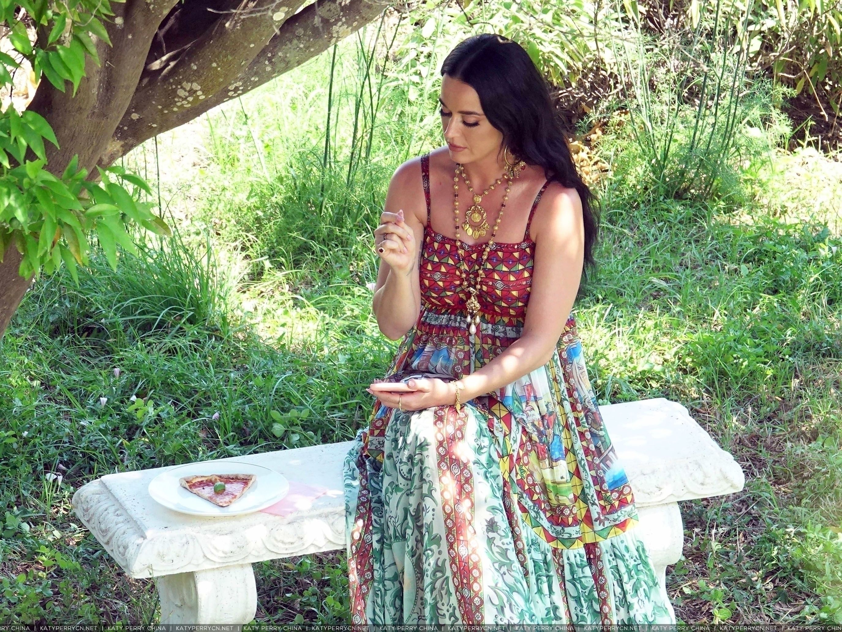 Katy Perry在卡普里拍摄杜嘉班纳广告期间享用披萨